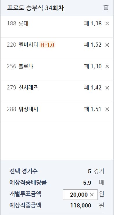 * 인터밀란의 최근 경기력 및 좋은 분위기만 믿고 선택한 것이 결국은 실패했다. 볼로냐 역시 최근 상승세였다는 점과 주축 선수 2명이 복귀한 것이 변수로 작용했다. 하지만 프로토 과거 동일 배당 기록도 그렇고 최근 인터밀란의 흐름을 봤을 때 선택할 수밖에 없었던 매력적인 경기였다.
