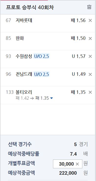 프로토 40회차 화요일 조합