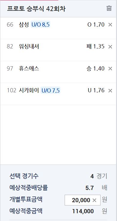 삼성 vs KIA 1.73-1.79 일 때 KBO 기준으로 6승 4패// 프로토 기준 오버 기대 확률 51.76% - 적중 실패