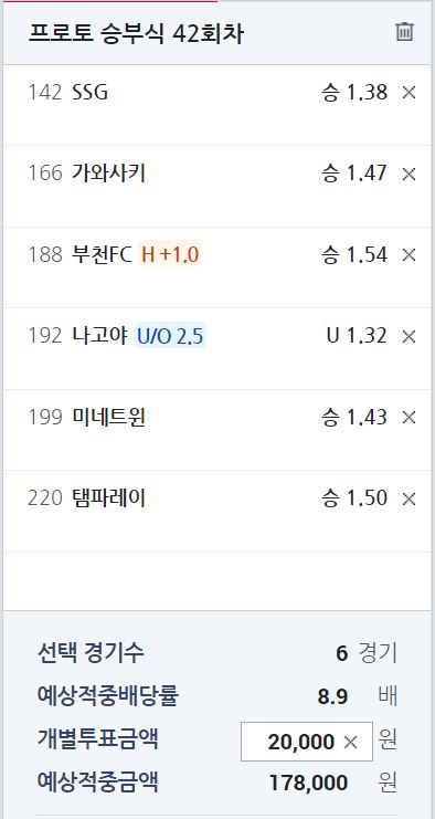부천 vs 광주 3.10-2.95-2.11 일 때 1승 1무 0패// 프로토 기준 +1.0핸승 기대 확률 57.14% - 적중