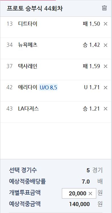 프로토 44회차 월요일 조합