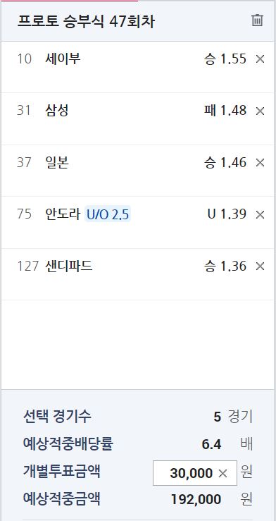 세이부 vs 히로시마 1.55-2.09 일 때 3승 2패// 프로토 기준 세이부 승리 기대 확률 56.78%