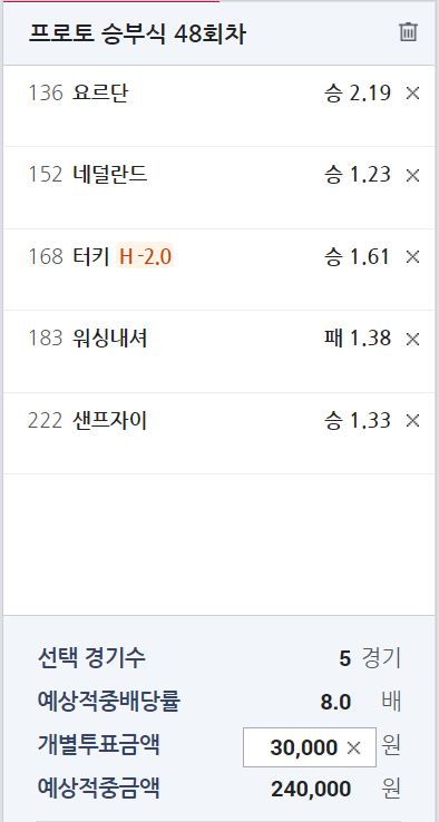 * 터키가 리투아니아 원정에서 완승을 기록했기에 3점차 이상 승리 확률이 매우 높다고 판단했다. 하지만 예상과는 달리 2점차 승리만 기록한 경기다.