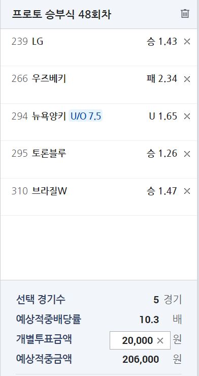 프로토 48회차 수요일 조합