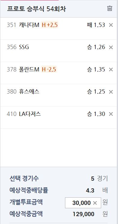 SSG vs 롯데 1.26-3.03 일 때 5승 1패// 프로토 기준 SSG 승리 기대 확률 70.63% - 적중