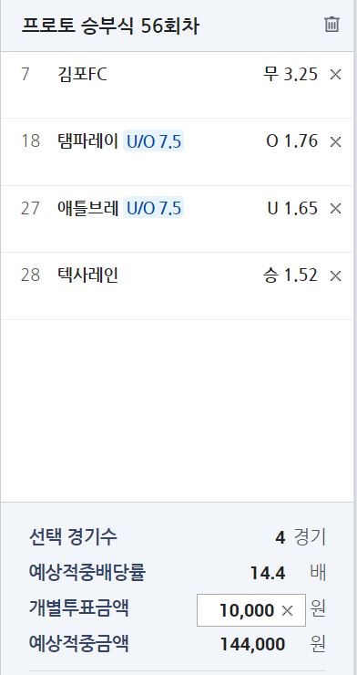 프로토 56회차 월요일 조합