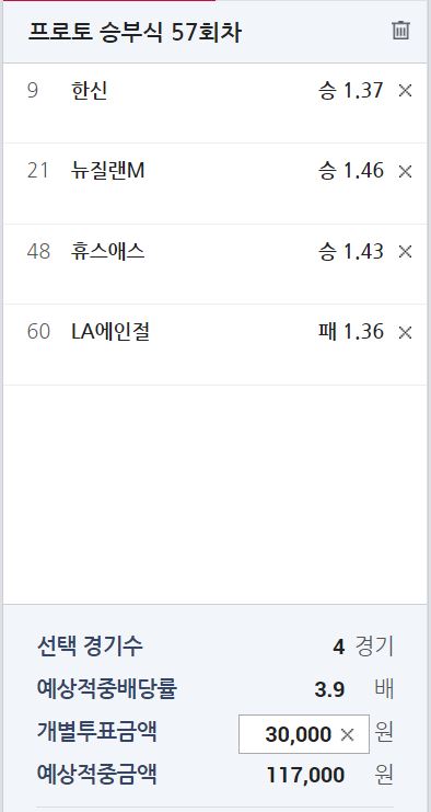 뉴질랜드 vs 레바논 1.46-2.28 일 때 8승 6패// 프로토 기준 뉴질랜드 승리 기대 확률 60.95%