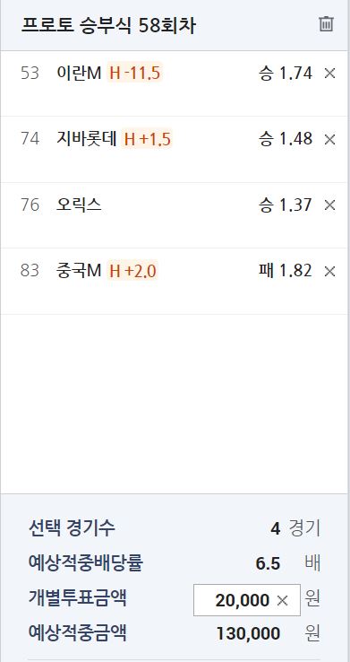 프로토 58회차 수요일 조합