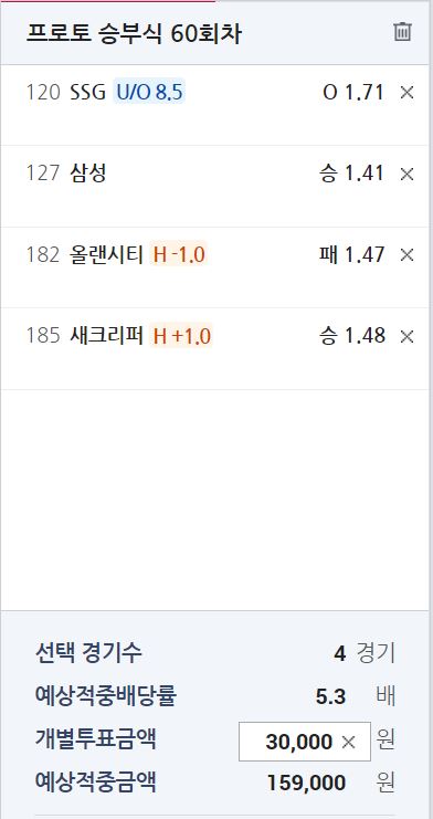 SSG vs LG 1.54-2.11 일 때 5승 8패// 프로토 기준 오버 기대 확률 52.04% - 적중