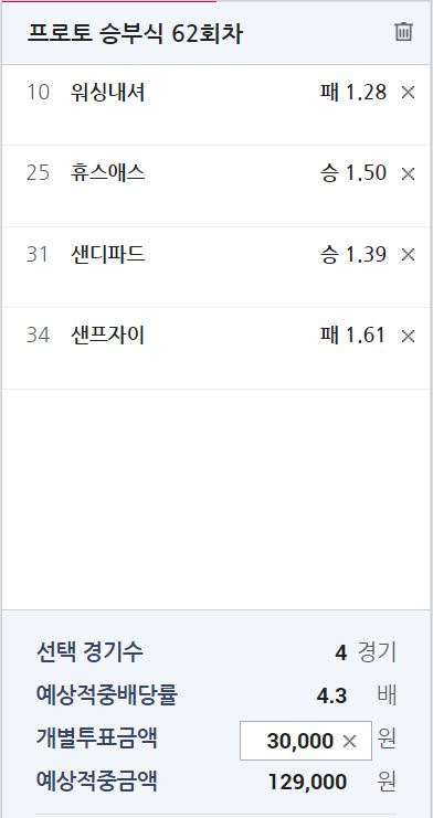 프로토 62회차 월요일 조합