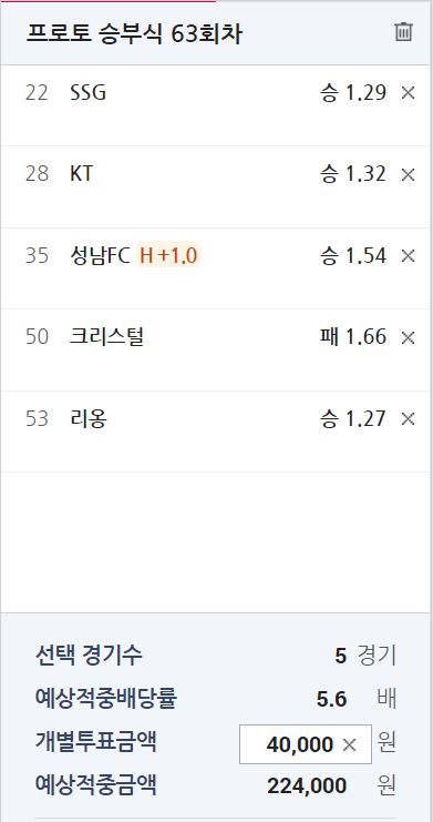 SSG vs 삼성 1.29-2.87 일 때 5승 1패// 프로토 기준 SSG 승리 기대 확률 68.99%