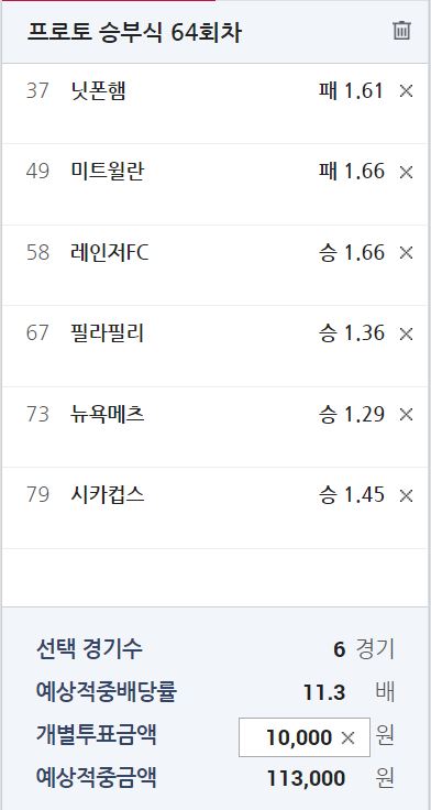 뉴욕 메츠 vs 신시내티 1.29-2.87 일 때 5승 1패// 프로토 기준 메츠 승리 기대 확률 68.99% - 적중