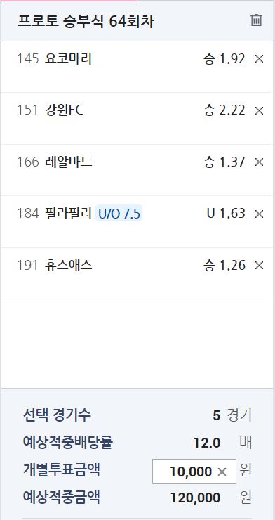 요코하마 마리노스 vs 산프레체 히로시마 1.92-3.55-3.00 일 때 1승 0무 0패// 프로토 기준 요코하마 마리노스 승리 기대 확률 46.35% - 적중 실패