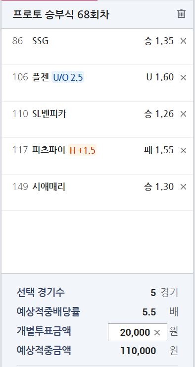 프로토 68회차 화요일 조합