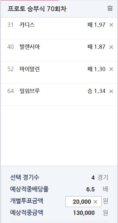 프로토 70회차 월요일 조합