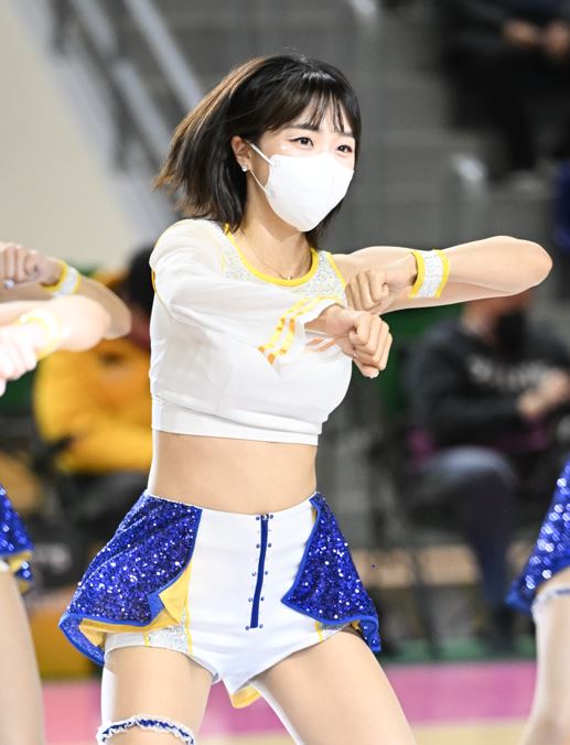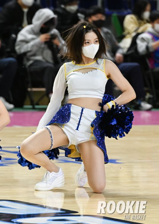 용인실내체육관에서 ‘신한은행 SOL 2022~2023 여자프로농구’ 용인 삼성생명과 부산 BNK썸의 경기가 열렸다. 이주희 치어리더가 삼성생명을 응원하고 있다.