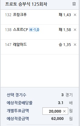 [천기누설픽] 순한맛 2.1배 매운맛 3.1배(프로토 125회차 수요일)
